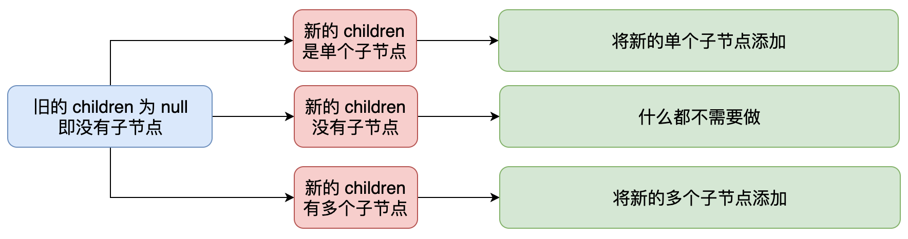 // 有旧的 VNode 但是没有新的 VNode,这说明应该移除 DOM,在浏览器中可以使用 removeChild 函数。