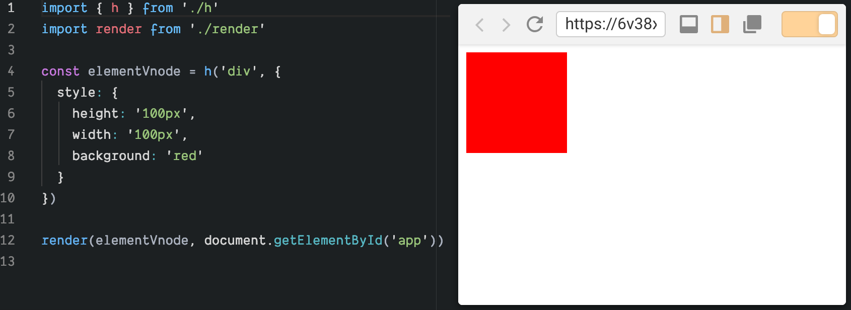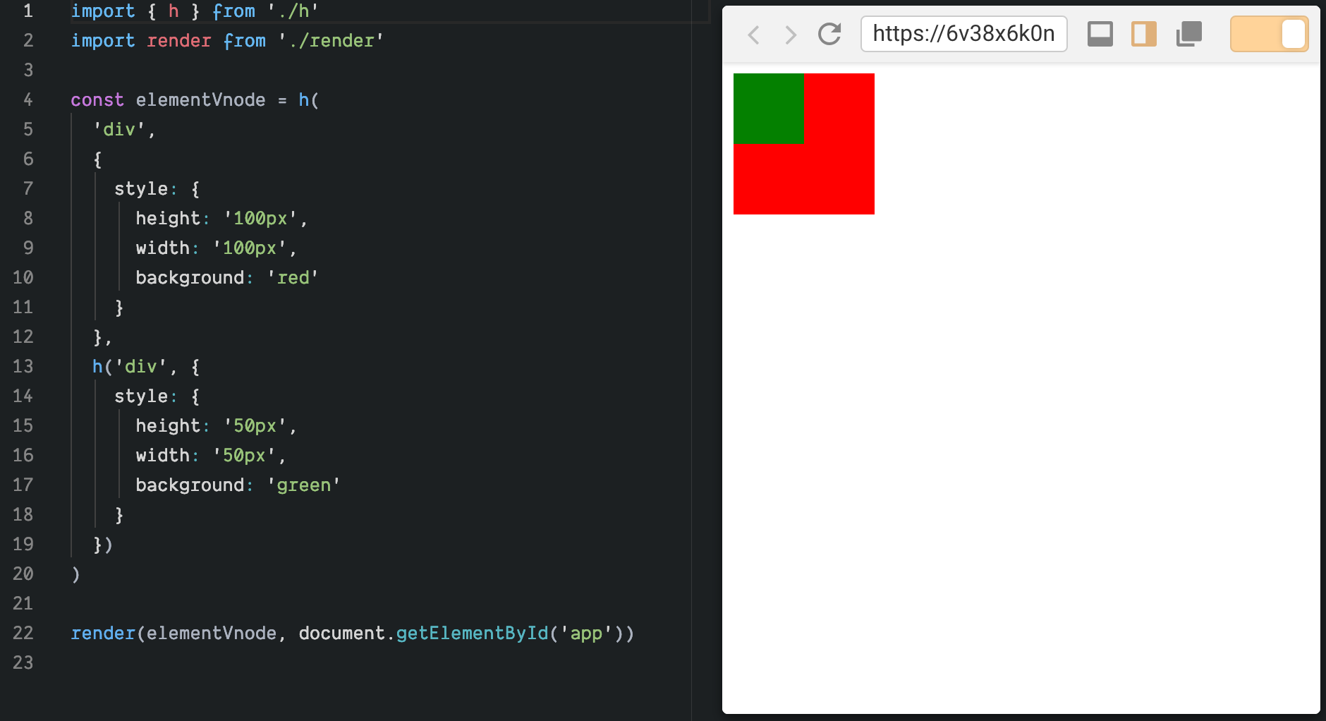 我们来测试一下我们的代码,假设我们要渲染的 VNode 如下: